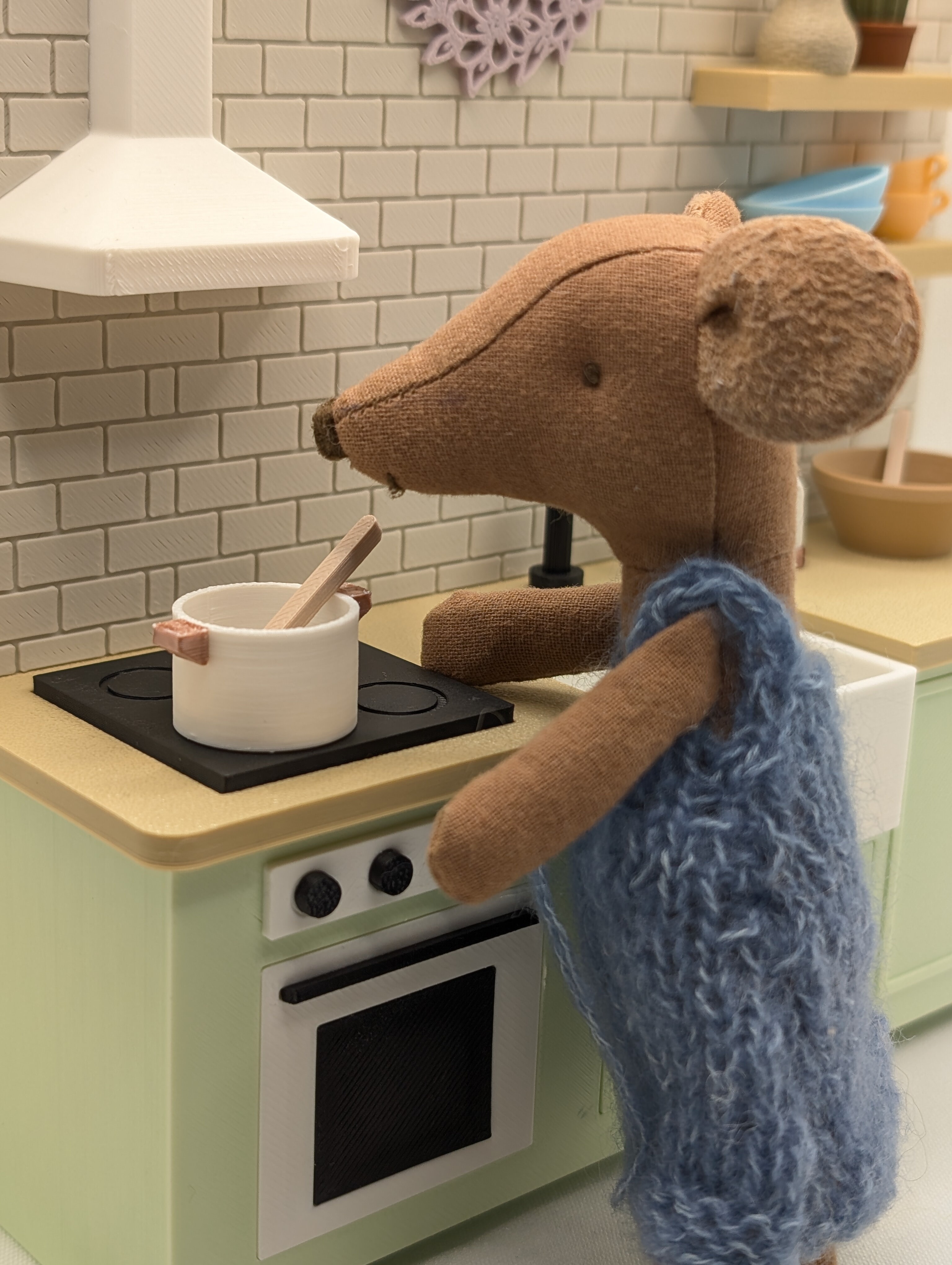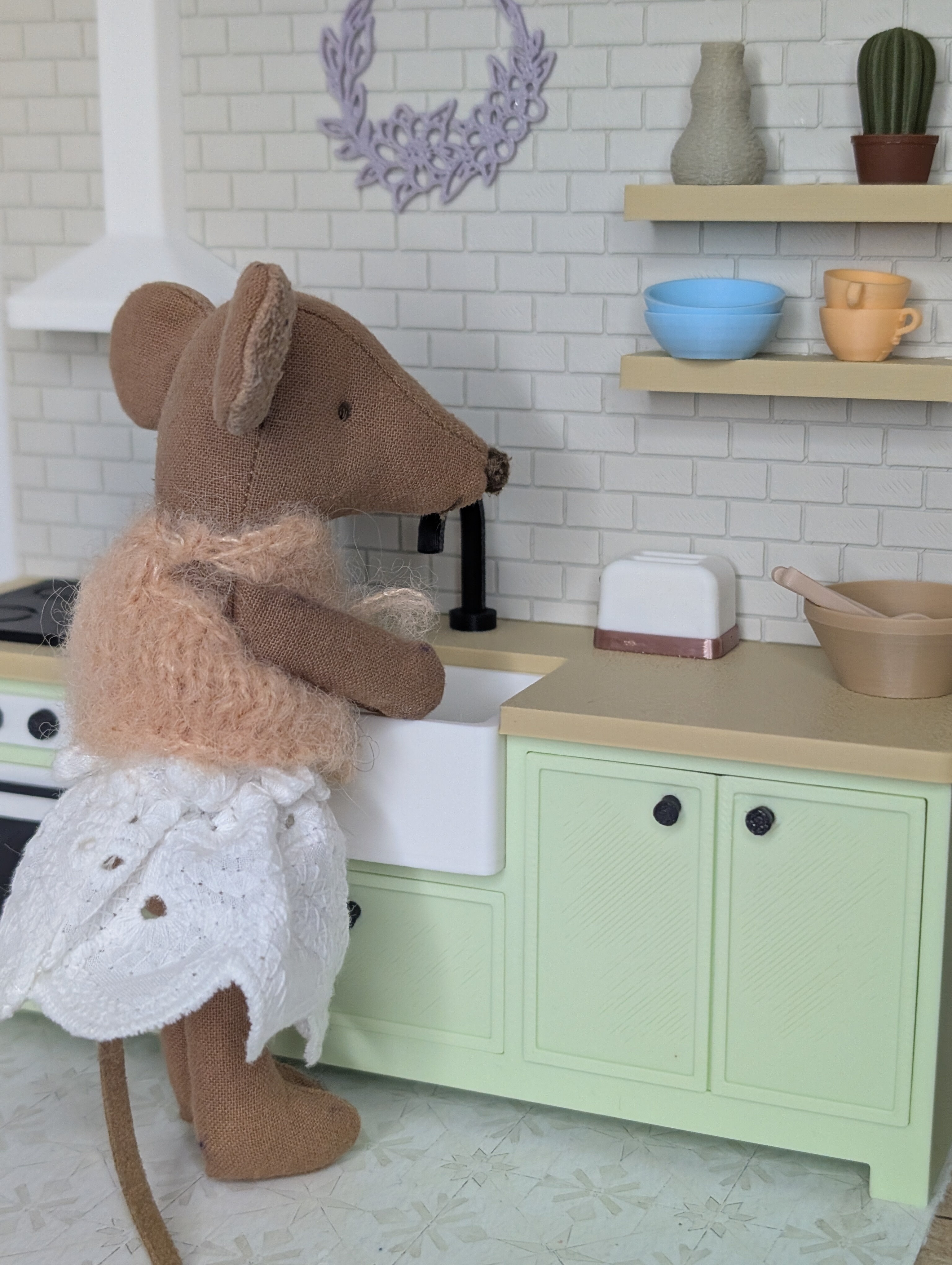 Stwórz wyjątkowy, ciepły i pełen detali świat dla swoich małych bohaterów! Nasza kuchnia dla myszek i mini-laleczek to zaprojektowany i wyprodukowany w Polsce zestaw mebelków wykonanych z plastiku pochodzącego z recyklingu. Idealny dla miłośników miniaturek, kreatywnej zabawy i tworzenia domków dla lalek.