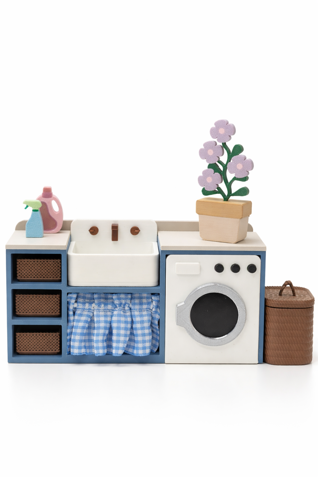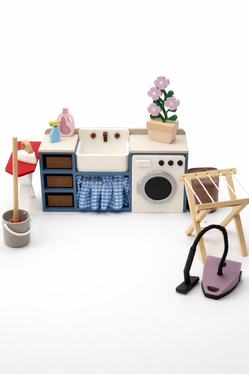 Pralnia to doskonały dodatek do dziecięcego domku dla lalek lub myszek. Dzięki realistycznym detalom zabawa staje się jeszcze bardziej wciągająca i pozwala tworzyć wiele codziennych historii z życia małych mieszkańców domku.
